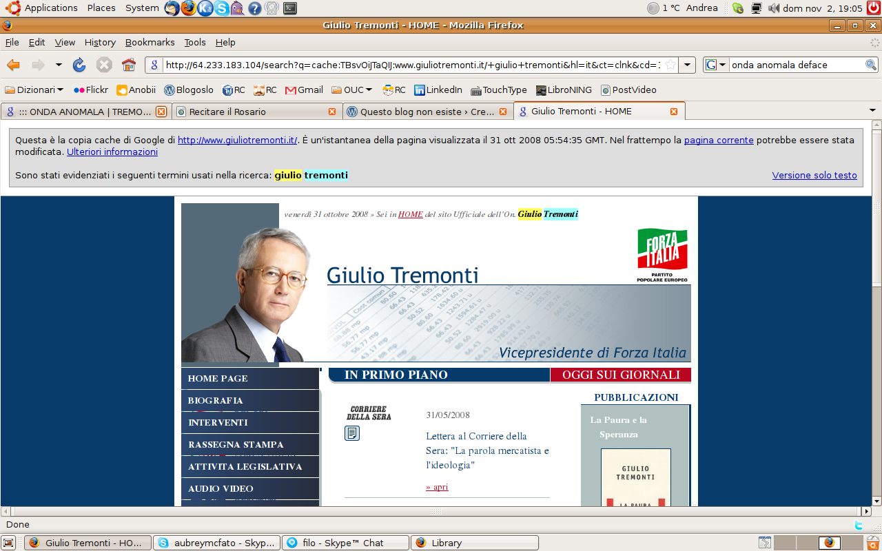 Quei “cattivi ragazzi” di Onda Anomala, pseudonimo del movimento studentesco contro la legge 133 (la “riforma Gelmini”), hanno compiuto un deface del sito ufficiale di Tremonti.
