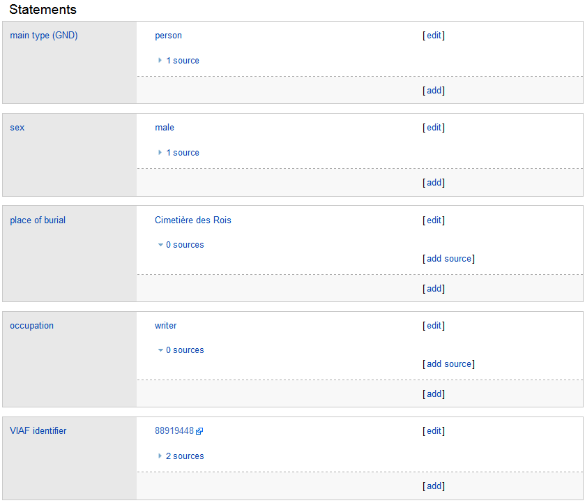 Per ogni dichiarazione (statement) c’è anche una fonte (source). Questo vuol dire che ogni affermazione fatta su Wikidata, nel lungo periodo, avrà una fonte che ne garantisca l’autorevolezza.