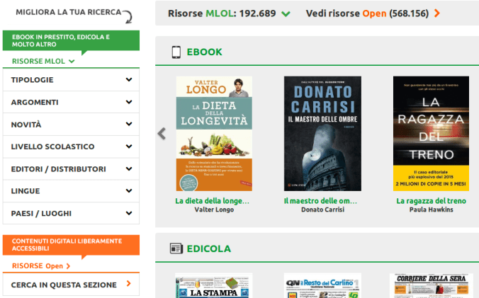 Al momento MLOL (nelle sue varie istanze: i portali bibliotecari e anche i portali MLOL Scuola) possiede infatti due principali collezioni: