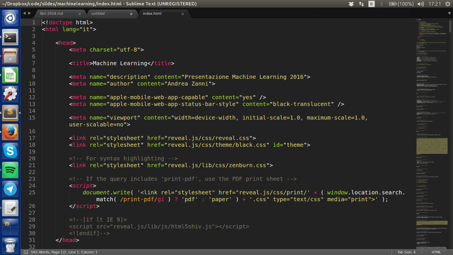Da qualche anno, se devo fare delle slides, uso reveal.js, un programma open source veramente bello e potente: personalmente, lo sfrutto ogni volta che posso, e cerco di impararlo meglio ogni volta che faccio una presentazione. Le sue funzionalità sono tantissime, ed è impossibile essere esperti in una volta sola. Se nella vita avete fattoContinua a leggere “Presentazioni web”